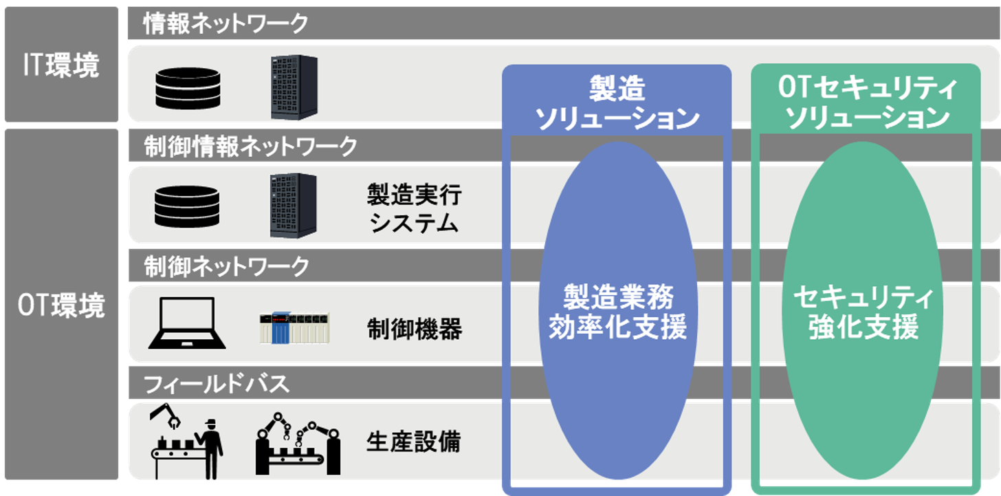 当社は、製造ソリューションの提供を通じて培った、工場の生産プロセスや運用に関するノウハウを活かして、製造現場の制約(機器の更新周期の長さ、データのリアルタイム性の確保 など)や業務フローを理解し、事業継続と運用の安定性を両立させるOTセキュリティソリューションを提供します。