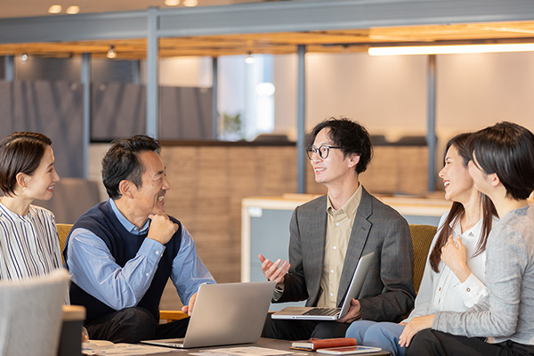 日頃、接点の少ない二階層上の上長とざっくばらんに話せる場を設け、職場方針や戦略だけでなく、日常の悩みやアイデアも自由に共有できるようにしています。こうした懇談は上下間の理解と信頼関係を深め、コミュニケーションの壁を取り払い、働きやすい職場づくりと組織の活性化につながっています。
