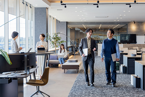 そういった勤務形態の中で、対面でのコミュニケーションで得られる効果(相手の様子が見え、気軽に質問ができる、集まることで生まれる自由な会話など)が薄れてしまわないように、週に1日以上は出社を原則とする、「出社ガイドライン」を設定しています。対面での会話を推進することにより、心理的安全性の確保・アジリティ向上、イノベーティブな発想・協創・業務効率化、職場の一体感醸成など、社内環境に変化をもたらすことも期待できます。